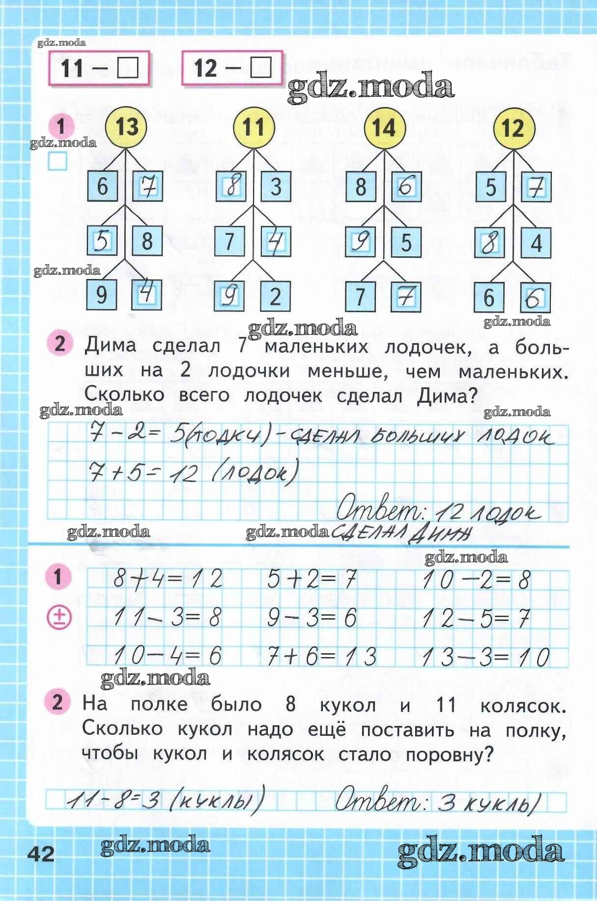 ОТВЕТ на задание № 42 Рабочая тетрадь по Математике 1 класс Моро Школа России