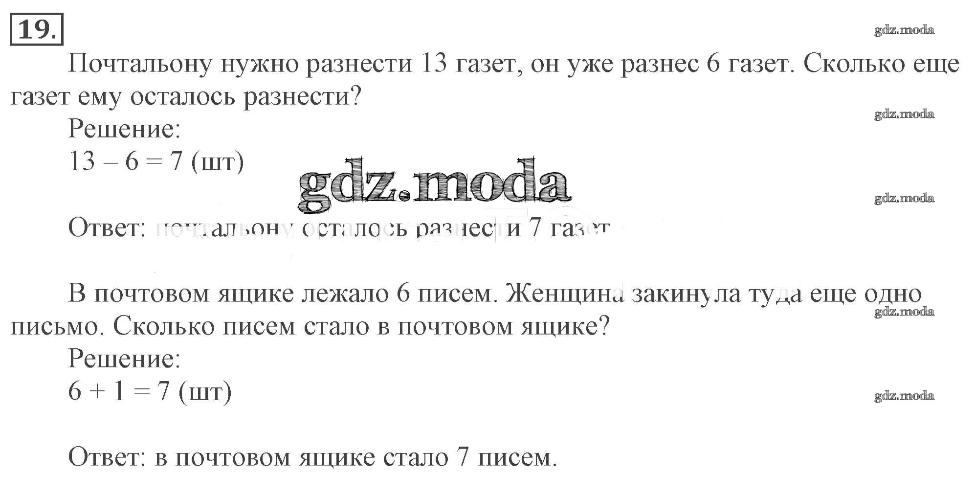 ОТВЕТ на задание № Упр.19 Учебник по Математике 1 класс Рудницкая Начальная школа XXI века