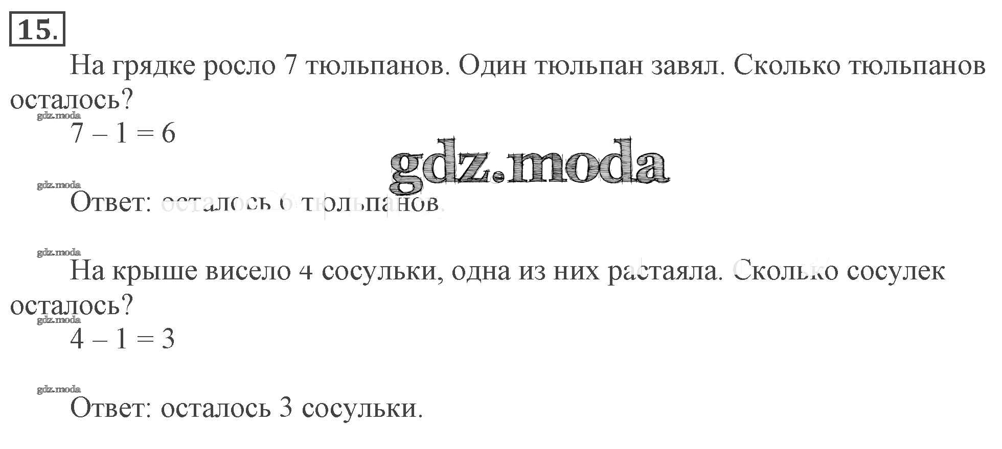 ОТВЕТ на задание № Упр.15 Учебник по Математике 1 класс Рудницкая Начальная школа XXI века