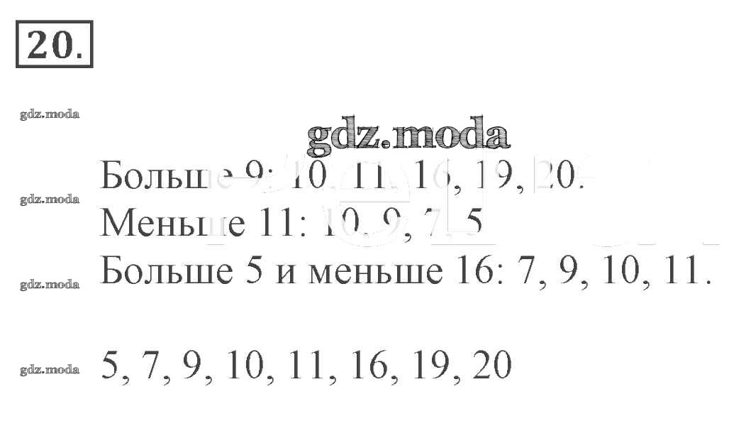 ОТВЕТ на задание № Упр.20 Учебник по Математике 1 класс Рудницкая Начальная школа XXI века