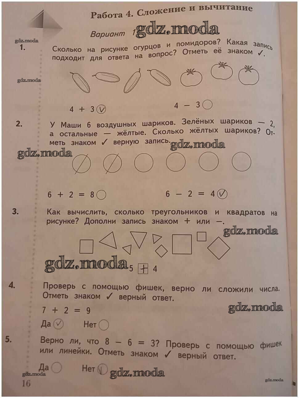 ГДЗ решение к заданию № 16 Математика 1 класс тетрадь для проверочных работ Рудницкая В.Н. Вентана-граф 2020 ФГОС бесплатно на гдз.мода!