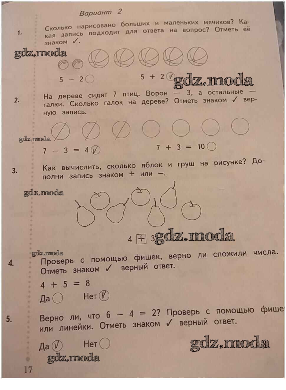 ГДЗ решение к заданию № 17 Математика 1 класс тетрадь для проверочных работ Рудницкая В.Н. Вентана-граф 2020 ФГОС бесплатно на гдз.мода!