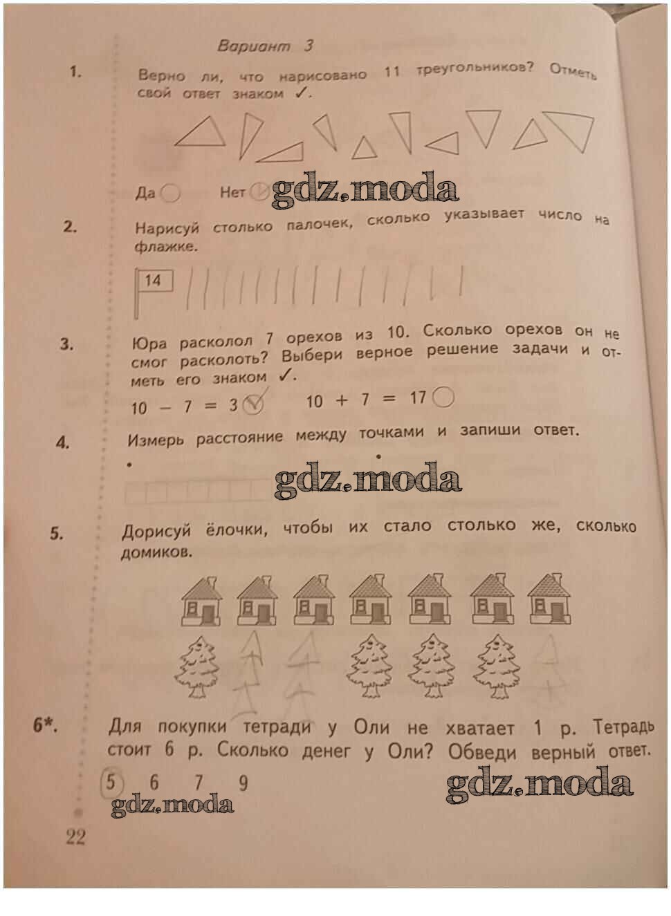 ГДЗ решение к заданию № 22 Математика 1 класс тетрадь для проверочных работ Рудницкая В.Н. Вентана-граф 2020 ФГОС бесплатно на гдз.мода!