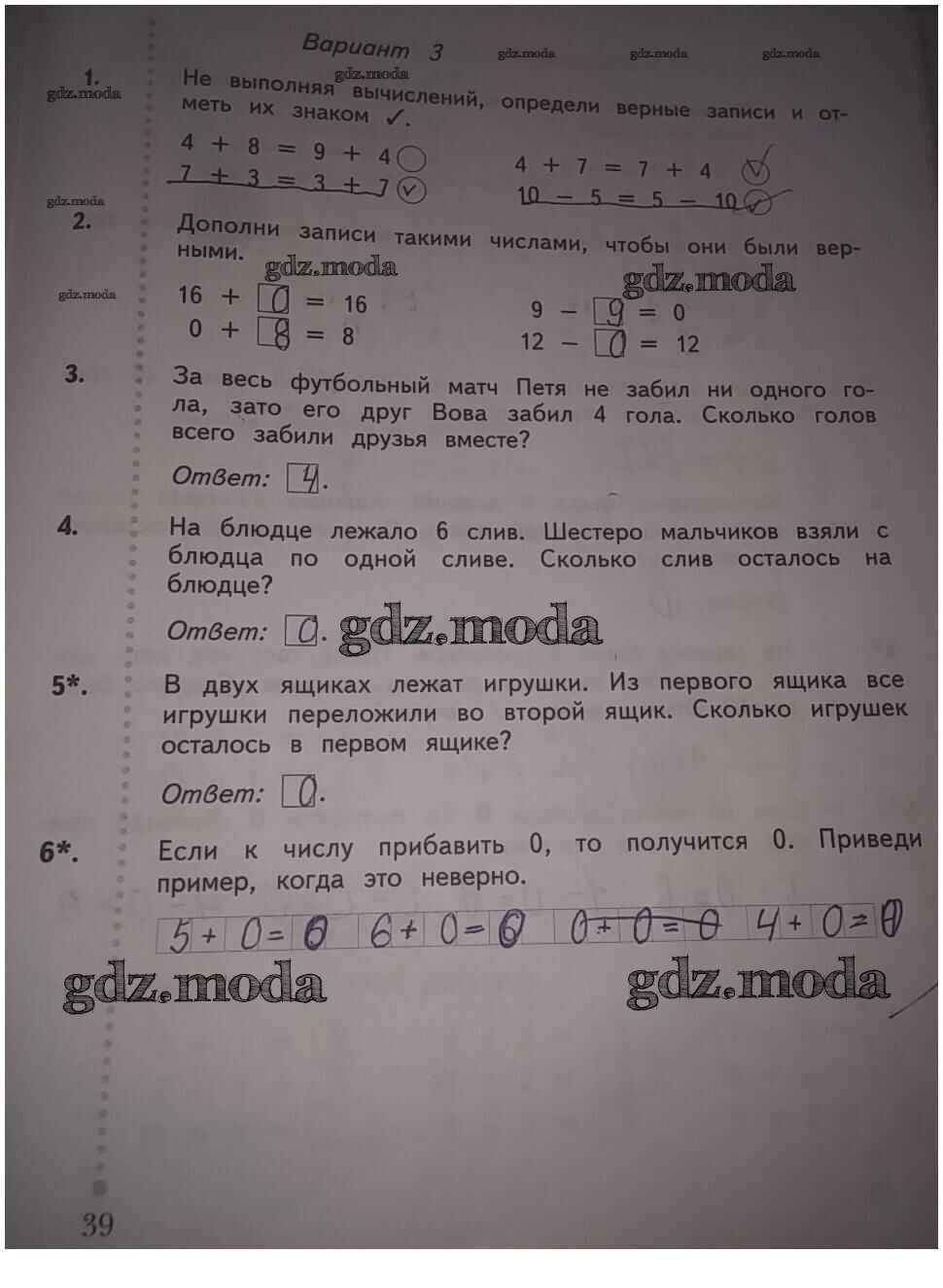 ГДЗ решение к заданию № 39 Математика 1 класс тетрадь для проверочных работ Рудницкая В.Н. Вентана-граф 2020 ФГОС бесплатно на гдз.мода!