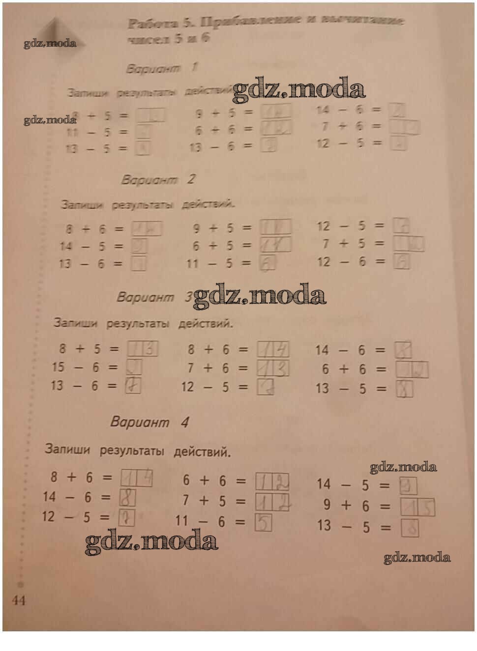 ГДЗ решение к заданию № 44 Математика 1 класс тетрадь для проверочных работ Рудницкая В.Н. Вентана-граф 2020 ФГОС бесплатно на гдз.мода!
