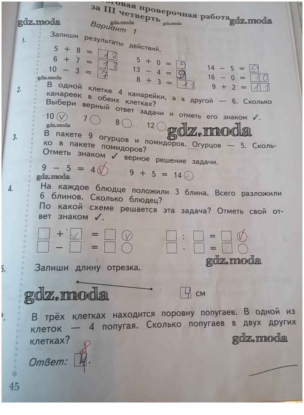 ГДЗ решение к заданию № 45 Математика 1 класс тетрадь для проверочных работ Рудницкая В.Н. Вентана-граф 2020 ФГОС бесплатно на гдз.мода!
