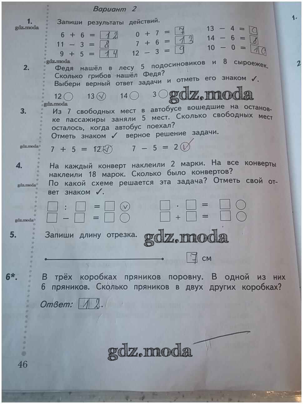 ГДЗ решение к заданию № 46 Математика 1 класс тетрадь для проверочных работ Рудницкая В.Н. Вентана-граф 2020 ФГОС бесплатно на гдз.мода!