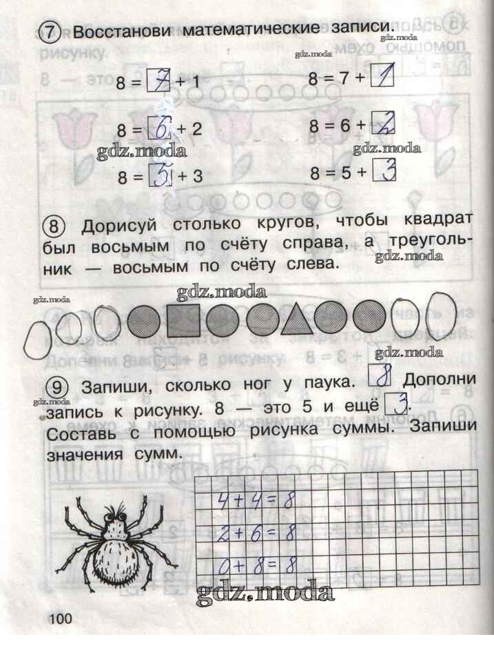 ГДЗ решение к заданию № 100 Математика 1 класс тетрадь для самостоятельной работы Захарова О.А. Академкнига 2016 Часть 1, Часть 2 бесплатно на гдз.мода!