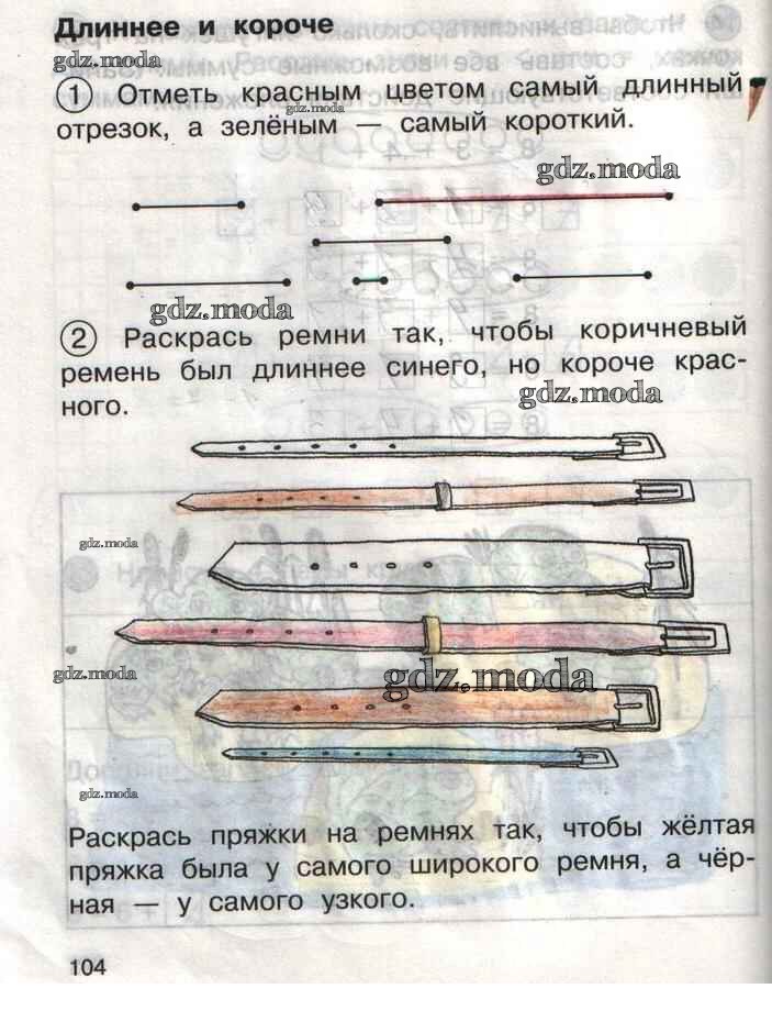 ГДЗ решение к заданию № 104 Математика 1 класс тетрадь для самостоятельной работы Захарова О.А. Академкнига 2016 Часть 1, Часть 2 бесплатно на гдз.мода!