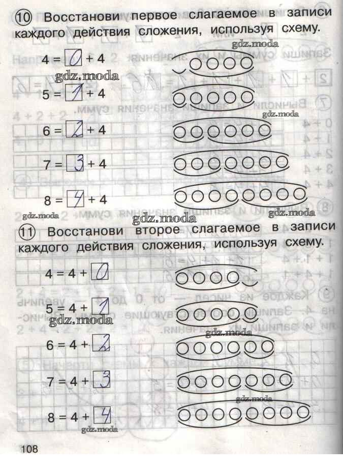 ГДЗ решение к заданию № 108 Математика 1 класс тетрадь для самостоятельной работы Захарова О.А. Академкнига 2016 Часть 1, Часть 2 бесплатно на гдз.мода!