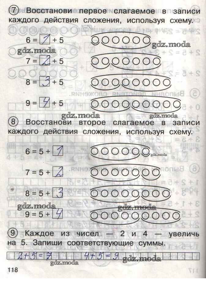 ГДЗ решение к заданию № 118 Математика 1 класс тетрадь для самостоятельной работы Захарова О.А. Академкнига 2016 Часть 1, Часть 2 бесплатно на гдз.мода!