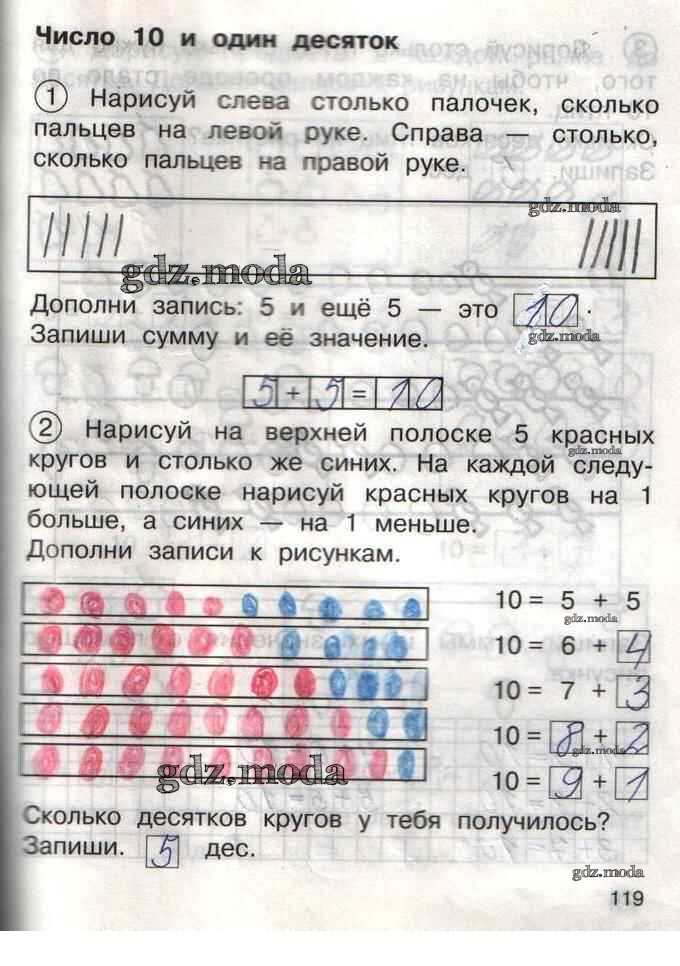 ГДЗ решение к заданию № 119 Математика 1 класс тетрадь для самостоятельной работы Захарова О.А. Академкнига 2016 Часть 1, Часть 2 бесплатно на гдз.мода!