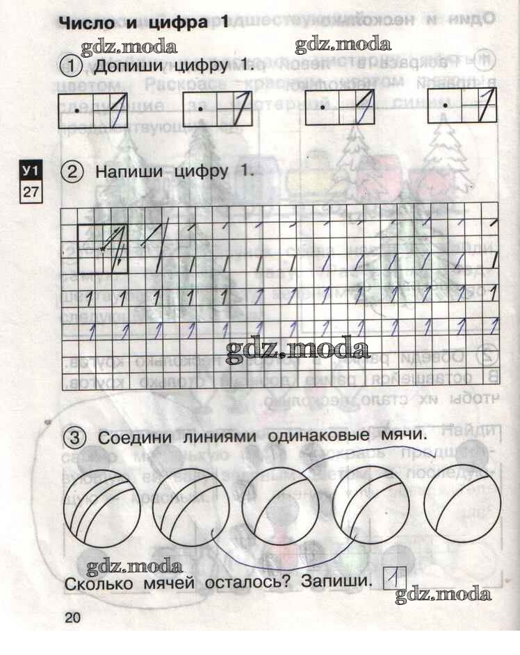 ГДЗ решение к заданию № 20 Математика 1 класс тетрадь для самостоятельной работы Захарова О.А. Академкнига 2016 Часть 1, Часть 2 бесплатно на гдз.мода!