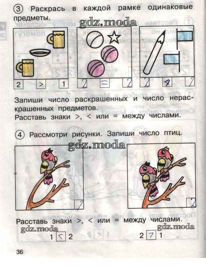 ГДЗ решение к заданию № 36 Математика 1 класс тетрадь для самостоятельной работы Захарова О.А. Академкнига 2016 Часть 1, Часть 2 бесплатно на гдз.мода!