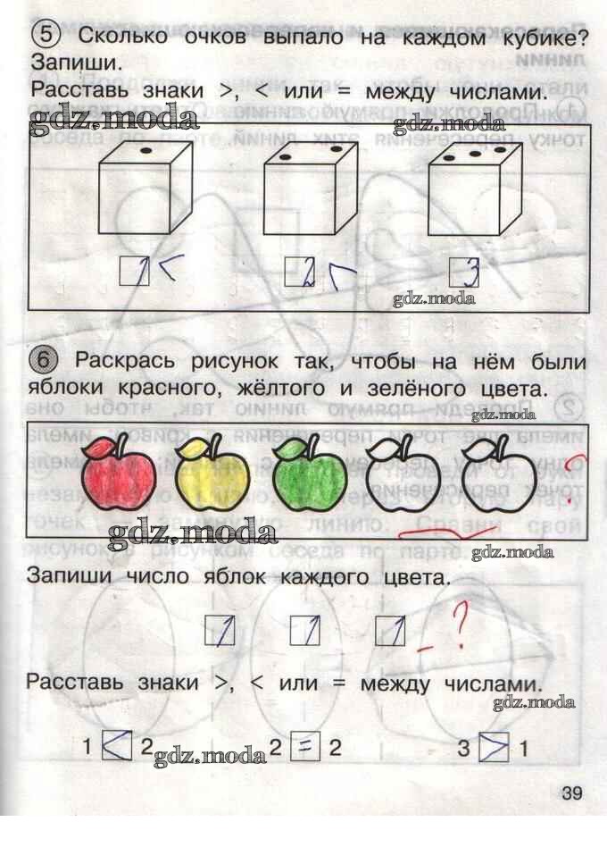 ГДЗ решение к заданию № 39 Математика 1 класс тетрадь для самостоятельной работы Захарова О.А. Академкнига 2016 Часть 1, Часть 2 бесплатно на гдз.мода!