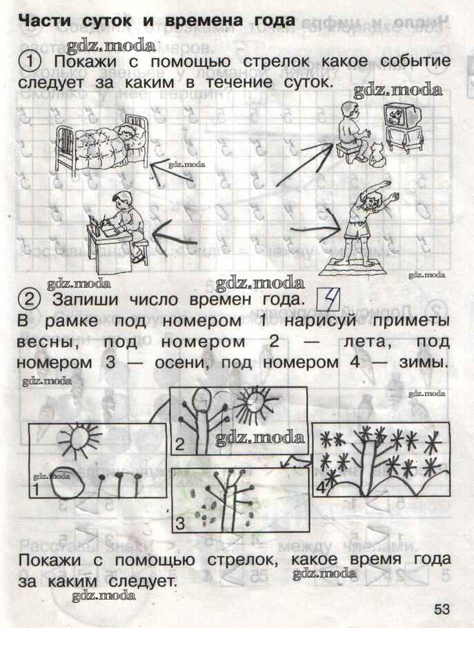ГДЗ решение к заданию № 53 Математика 1 класс тетрадь для самостоятельной работы Захарова О.А. Академкнига 2016 Часть 1, Часть 2 бесплатно на гдз.мода!