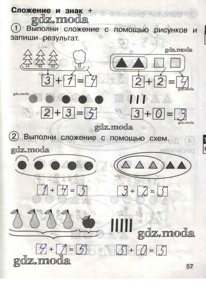 ГДЗ решение к заданию № 57 Математика 1 класс тетрадь для самостоятельной работы Захарова О.А. Академкнига 2016 Часть 1, Часть 2 бесплатно на гдз.мода!