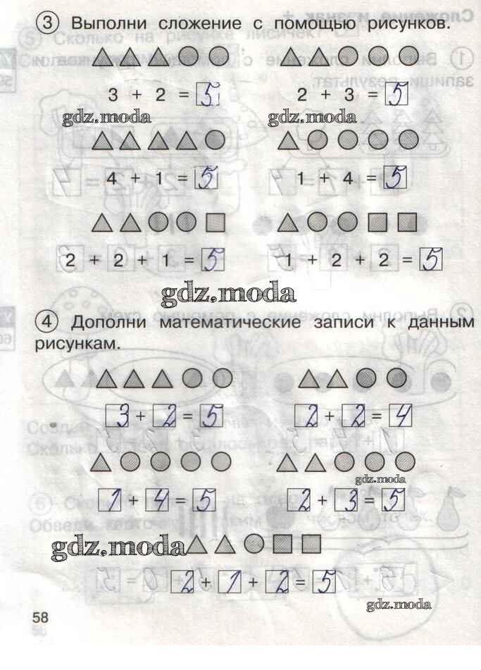 ГДЗ решение к заданию № 58 Математика 1 класс тетрадь для самостоятельной работы Захарова О.А. Академкнига 2016 Часть 1, Часть 2 бесплатно на гдз.мода!