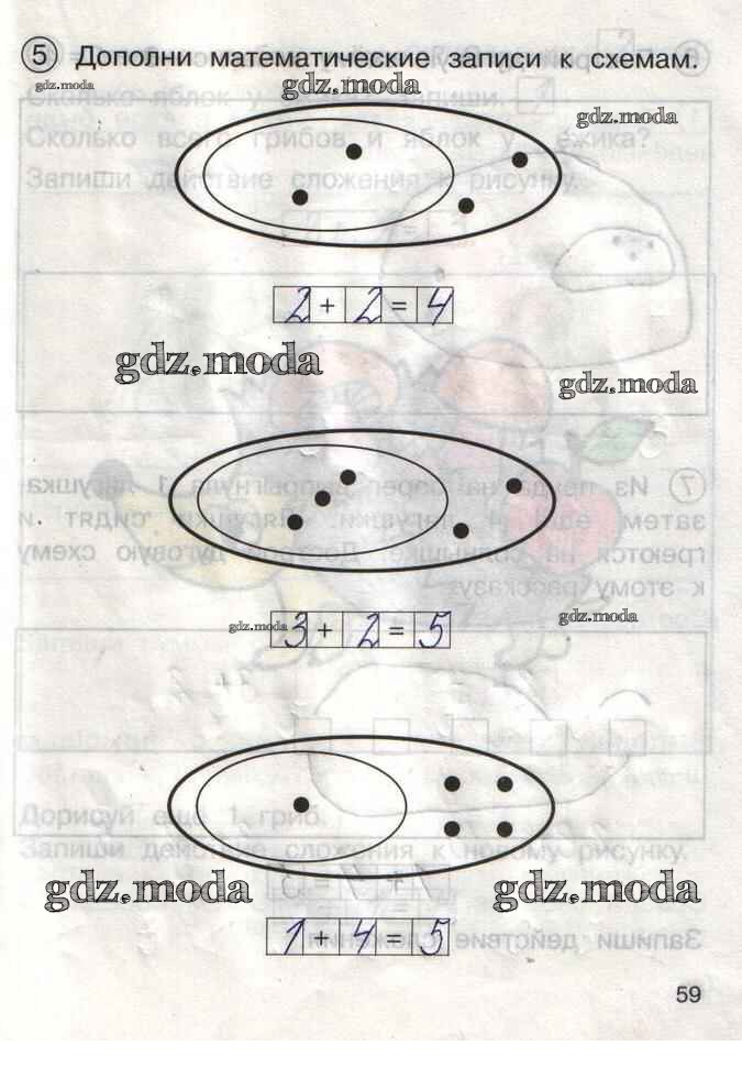 ГДЗ решение к заданию № 59 Математика 1 класс тетрадь для самостоятельной работы Захарова О.А. Академкнига 2016 Часть 1, Часть 2 бесплатно на гдз.мода!
