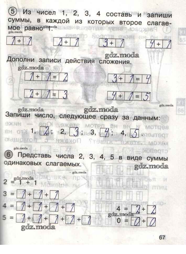 ГДЗ решение к заданию № 67 Математика 1 класс тетрадь для самостоятельной работы Захарова О.А. Академкнига 2016 Часть 1, Часть 2 бесплатно на гдз.мода!