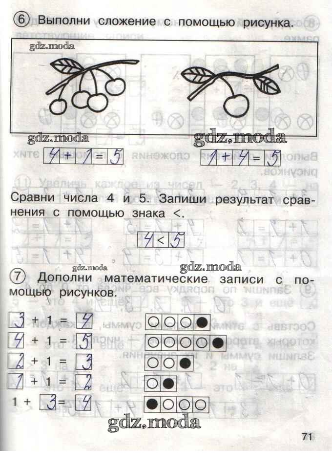 ГДЗ решение к заданию № 71 Математика 1 класс тетрадь для самостоятельной работы Захарова О.А. Академкнига 2016 Часть 1, Часть 2 бесплатно на гдз.мода!