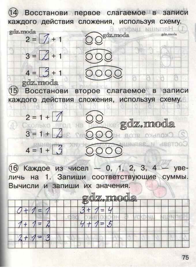 ГДЗ решение к заданию № 75 Математика 1 класс тетрадь для самостоятельной работы Захарова О.А. Академкнига 2016 Часть 1, Часть 2 бесплатно на гдз.мода!