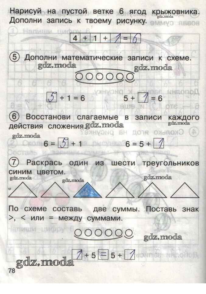ГДЗ решение к заданию № 78 Математика 1 класс тетрадь для самостоятельной работы Захарова О.А. Академкнига 2016 Часть 1, Часть 2 бесплатно на гдз.мода!