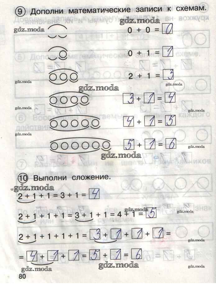 ГДЗ решение к заданию № 80 Математика 1 класс тетрадь для самостоятельной работы Захарова О.А. Академкнига 2016 Часть 1, Часть 2 бесплатно на гдз.мода!