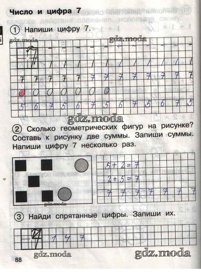 ГДЗ решение к заданию № 88 Математика 1 класс тетрадь для самостоятельной работы Захарова О.А. Академкнига 2016 Часть 1, Часть 2 бесплатно на гдз.мода!