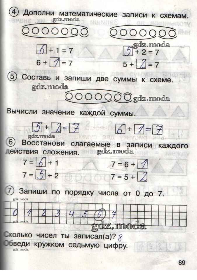 ГДЗ решение к заданию № 89 Математика 1 класс тетрадь для самостоятельной работы Захарова О.А. Академкнига 2016 Часть 1, Часть 2 бесплатно на гдз.мода!