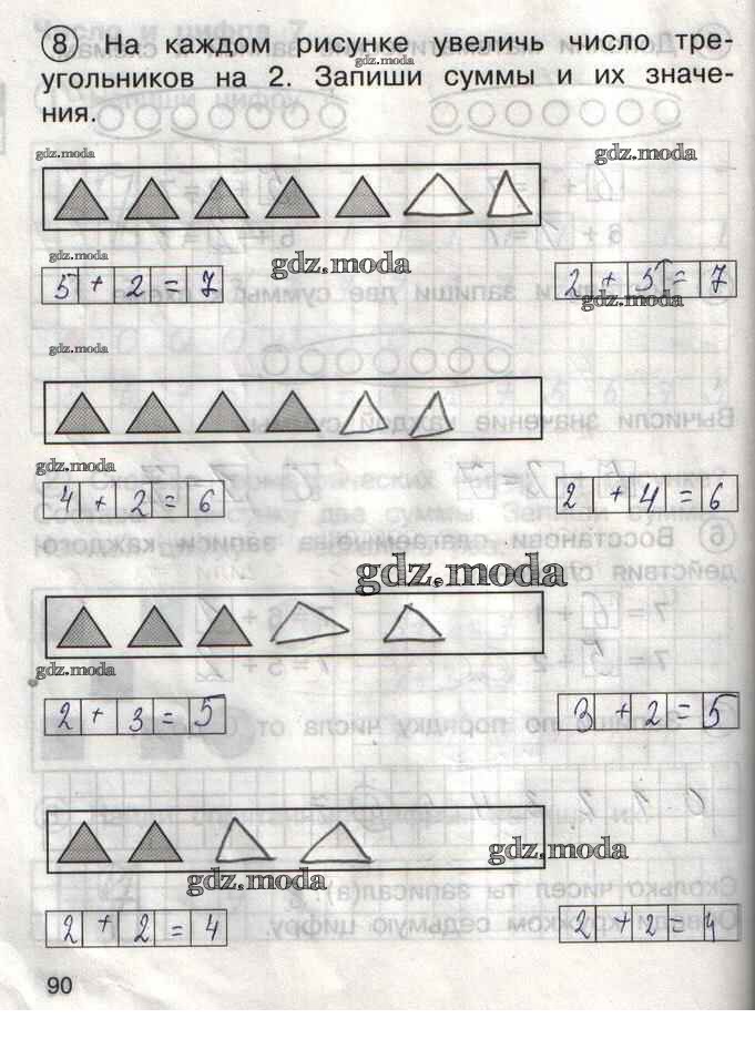 ГДЗ решение к заданию № 90 Математика 1 класс тетрадь для самостоятельной работы Захарова О.А. Академкнига 2016 Часть 1, Часть 2 бесплатно на гдз.мода!