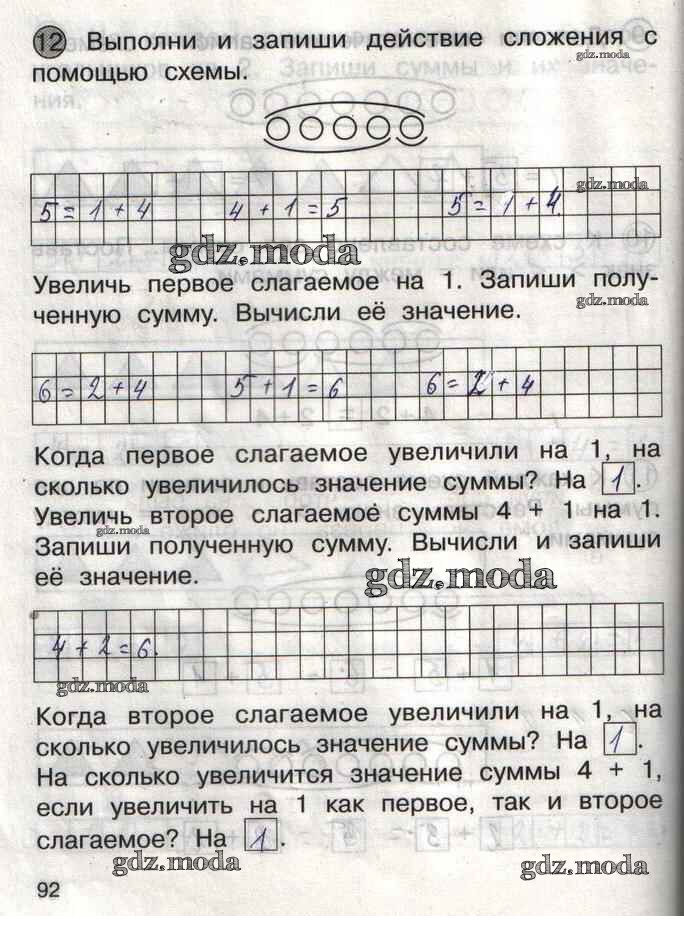 ГДЗ решение к заданию № 92 Математика 1 класс тетрадь для самостоятельной работы Захарова О.А. Академкнига 2016 Часть 1, Часть 2 бесплатно на гдз.мода!