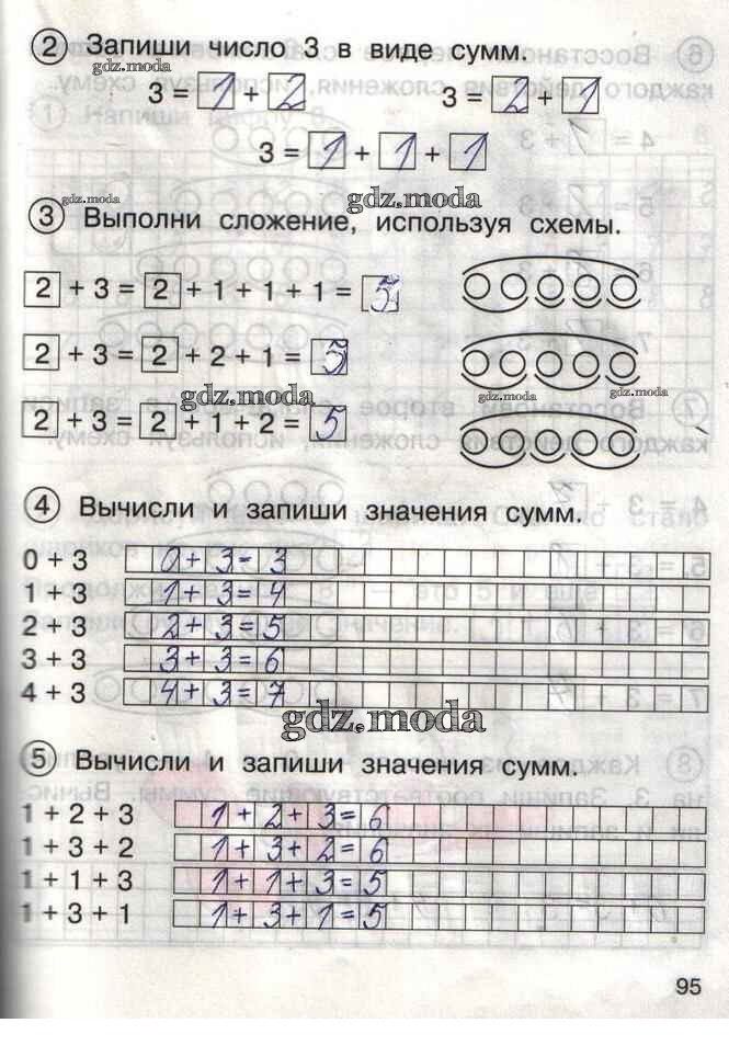 ГДЗ решение к заданию № 95 Математика 1 класс тетрадь для самостоятельной работы Захарова О.А. Академкнига 2016 Часть 1, Часть 2 бесплатно на гдз.мода!