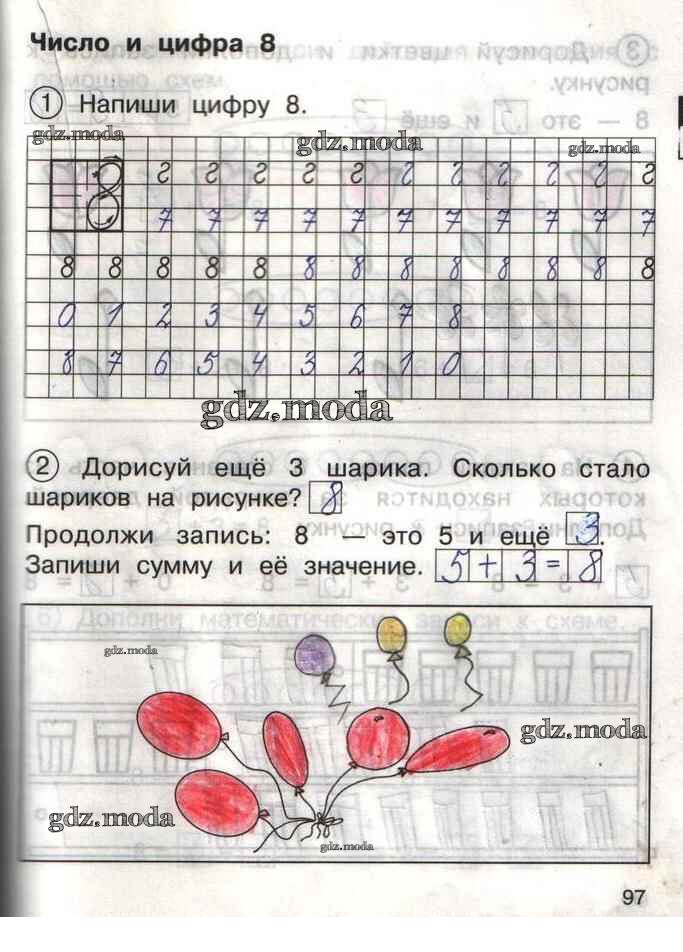 ГДЗ решение к заданию № 97 Математика 1 класс тетрадь для самостоятельной работы Захарова О.А. Академкнига 2016 Часть 1, Часть 2 бесплатно на гдз.мода!