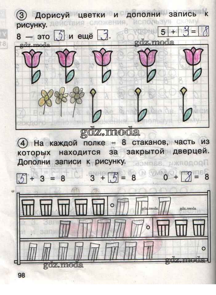 ГДЗ решение к заданию № 98 Математика 1 класс тетрадь для самостоятельной работы Захарова О.А. Академкнига 2016 Часть 1, Часть 2 бесплатно на гдз.мода!