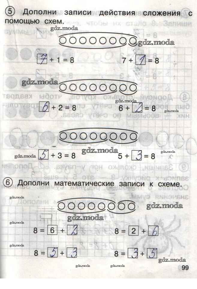 ГДЗ решение к заданию № 99 Математика 1 класс тетрадь для самостоятельной работы Захарова О.А. Академкнига 2016 Часть 1, Часть 2 бесплатно на гдз.мода!