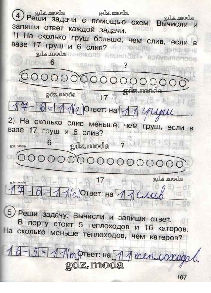 ГДЗ решение к заданию № 107 Математика 1 класс тетрадь для самостоятельной работы Захарова О.А. Академкнига 2016 Часть 1, Часть 2 бесплатно на гдз.мода!