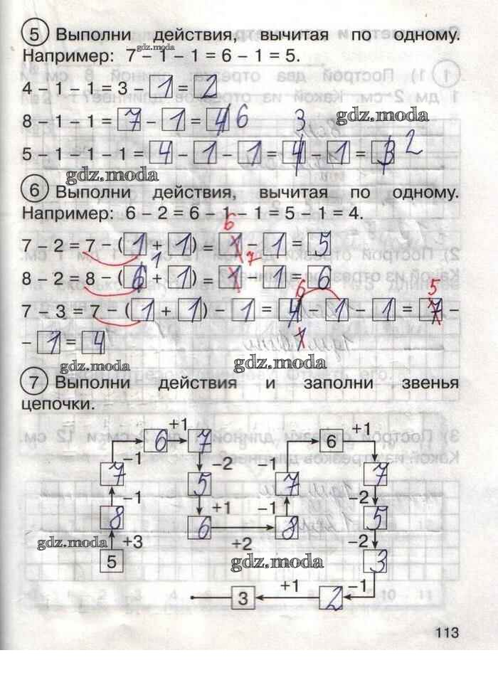 ГДЗ решение к заданию № 113 Математика 1 класс тетрадь для самостоятельной работы Захарова О.А. Академкнига 2016 Часть 1, Часть 2 бесплатно на гдз.мода!