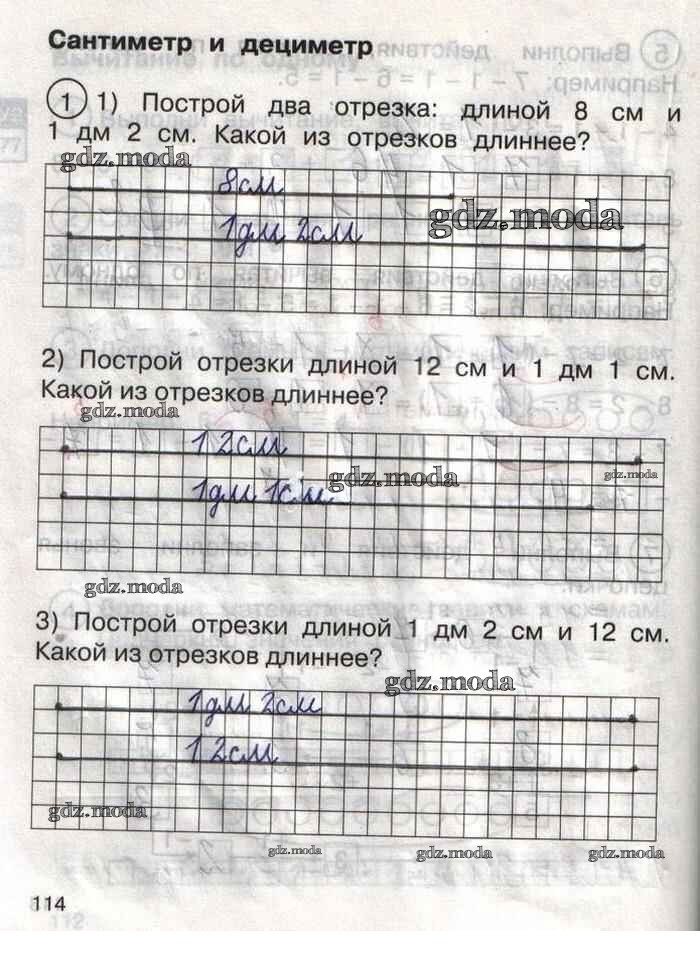 ГДЗ решение к заданию № 114 Математика 1 класс тетрадь для самостоятельной работы Захарова О.А. Академкнига 2016 Часть 1, Часть 2 бесплатно на гдз.мода!