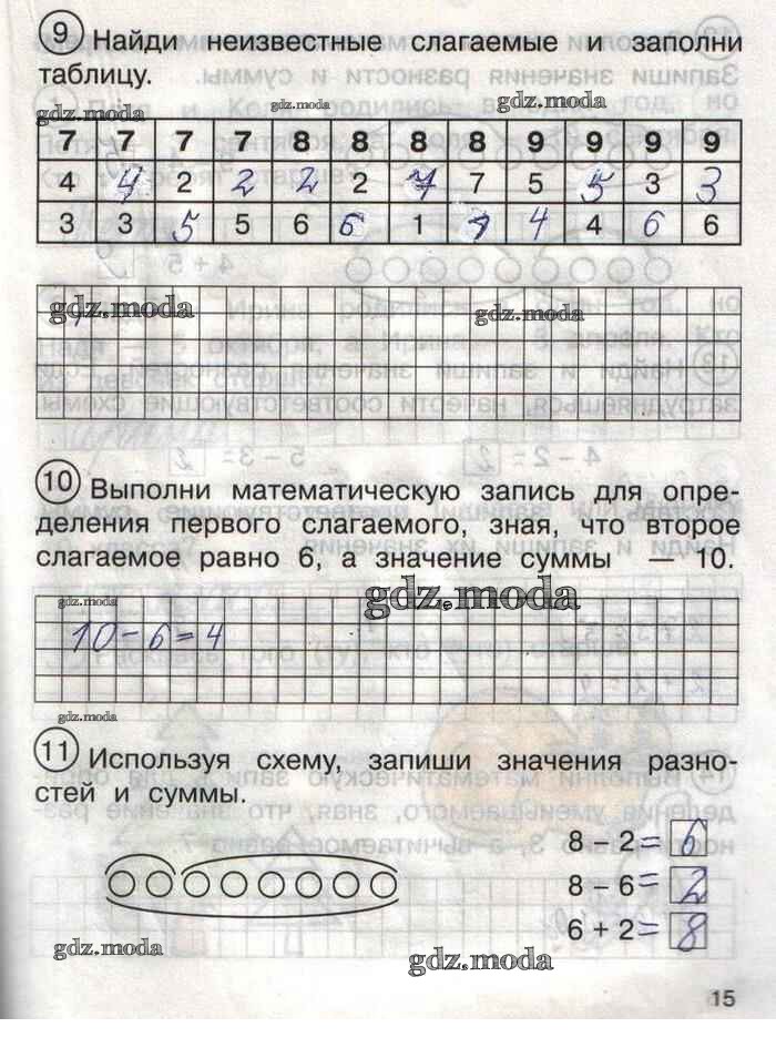 ГДЗ решение к заданию № 15 Математика 1 класс тетрадь для самостоятельной работы Захарова О.А. Академкнига 2016 Часть 1, Часть 2 бесплатно на гдз.мода!