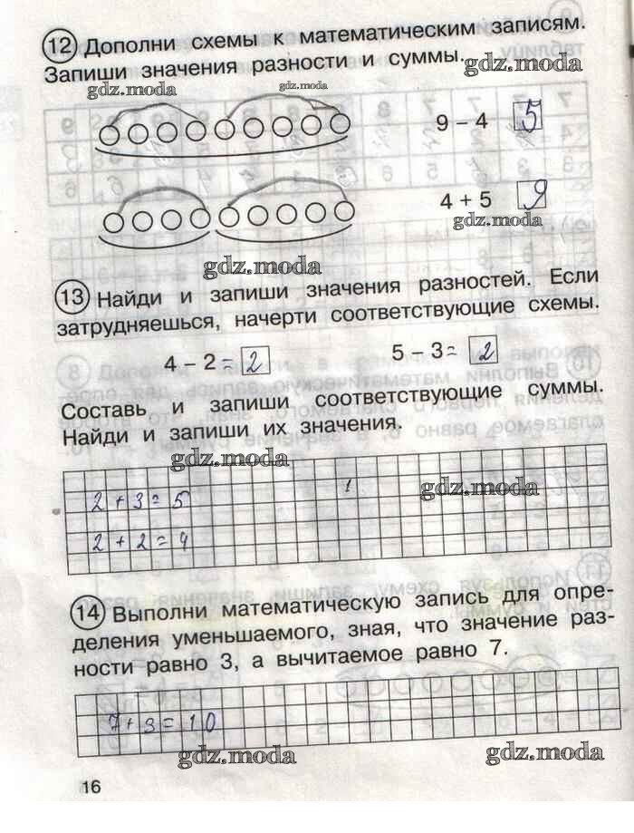 ГДЗ решение к заданию № 16 Математика 1 класс тетрадь для самостоятельной работы Захарова О.А. Академкнига 2016 Часть 1, Часть 2 бесплатно на гдз.мода!