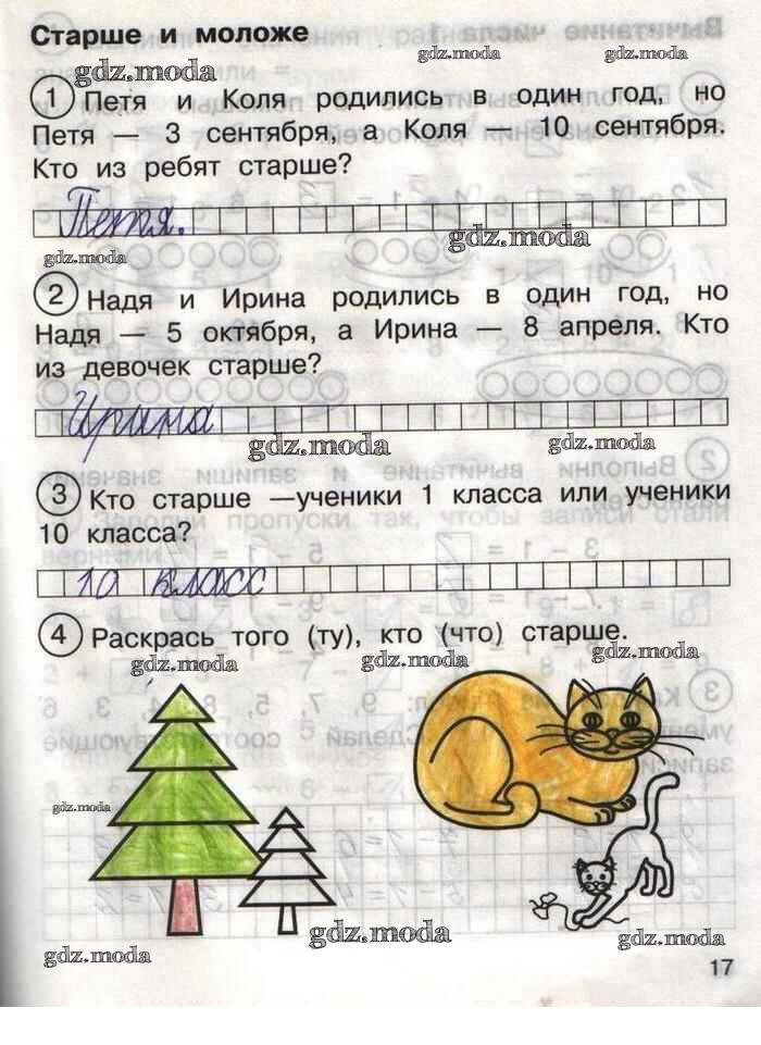 ГДЗ решение к заданию № 17 Математика 1 класс тетрадь для самостоятельной работы Захарова О.А. Академкнига 2016 Часть 1, Часть 2 бесплатно на гдз.мода!