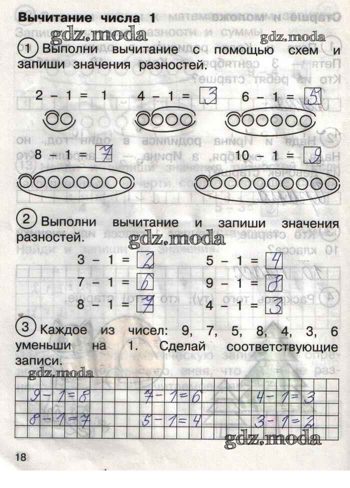 ГДЗ решение к заданию № 18 Математика 1 класс тетрадь для самостоятельной работы Захарова О.А. Академкнига 2016 Часть 1, Часть 2 бесплатно на гдз.мода!