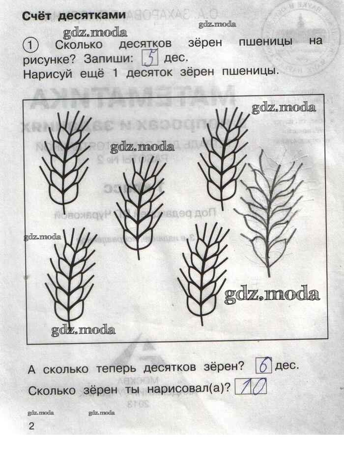 ОТВЕТ на задание № 2 Тетрадь для самостоятельной работы по Математике 1 класс Захарова Перспективная начальная школа