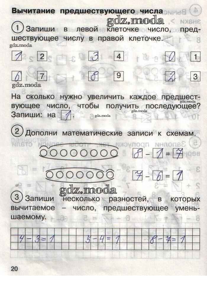 ГДЗ решение к заданию № 20 Математика 1 класс тетрадь для самостоятельной работы Захарова О.А. Академкнига 2016 Часть 1, Часть 2 бесплатно на гдз.мода!