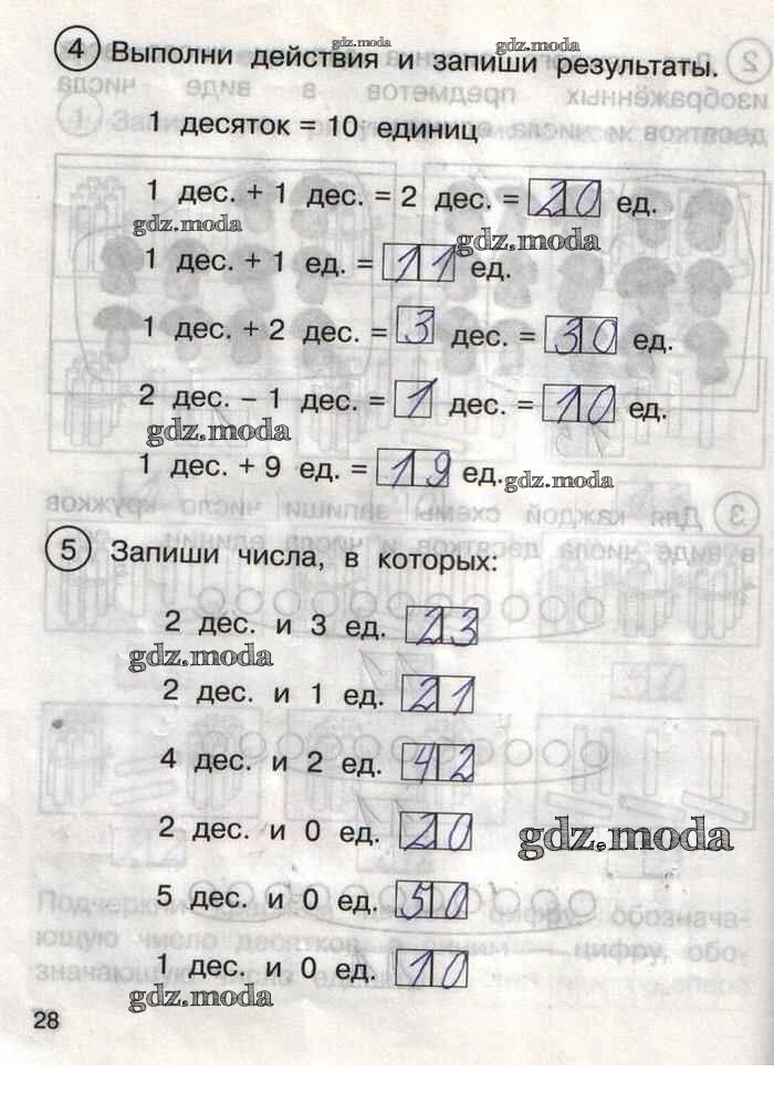 ГДЗ решение к заданию № 28 Математика 1 класс тетрадь для самостоятельной работы Захарова О.А. Академкнига 2016 Часть 1, Часть 2 бесплатно на гдз.мода!