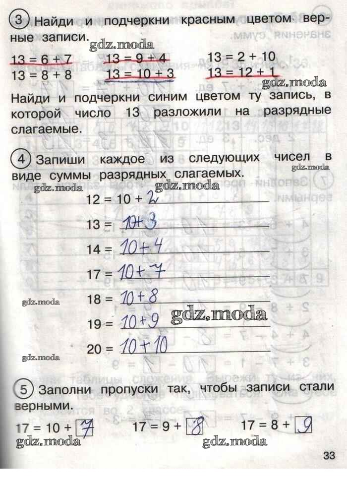 ГДЗ решение к заданию № 33 Математика 1 класс тетрадь для самостоятельной работы Захарова О.А. Академкнига 2016 Часть 1, Часть 2 бесплатно на гдз.мода!