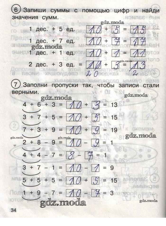 ГДЗ решение к заданию № 34 Математика 1 класс тетрадь для самостоятельной работы Захарова О.А. Академкнига 2016 Часть 1, Часть 2 бесплатно на гдз.мода!