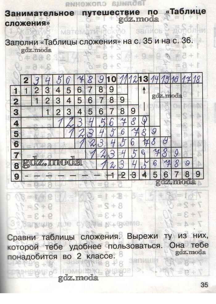 ГДЗ решение к заданию № 35 Математика 1 класс тетрадь для самостоятельной работы Захарова О.А. Академкнига 2016 Часть 1, Часть 2 бесплатно на гдз.мода!