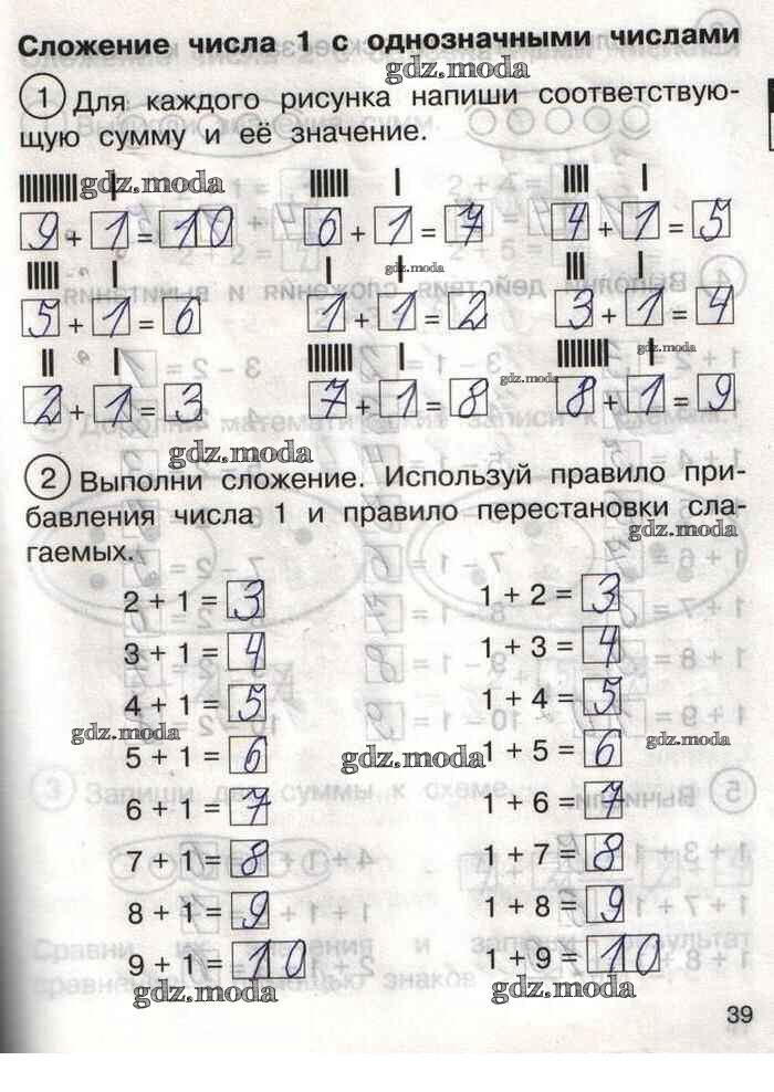 ГДЗ решение к заданию № 39 Математика 1 класс тетрадь для самостоятельной работы Захарова О.А. Академкнига 2016 Часть 1, Часть 2 бесплатно на гдз.мода!